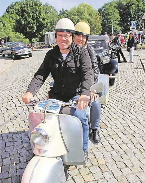 Für Hans-Uwe Walter – langjähriges Vereinsmitglied und Kommentator des Rennens – ist das eine Art von Musik. Zu jedem der Fahrzeuge weiß der eine Geschichte. Die Zuschauer am Straßenrand erfahren von ihm spannende Details aus der Historie der Oldtimer. Model für Model fährt an die Startlinie. Auch Bürgermeister Michael Langwald geht traditionell mit seiner Frau und einem Berliner Roller auf Tour. Mit Anhänger, doch was drin ist, verriet er allzu neugierigen Journalisten nicht…